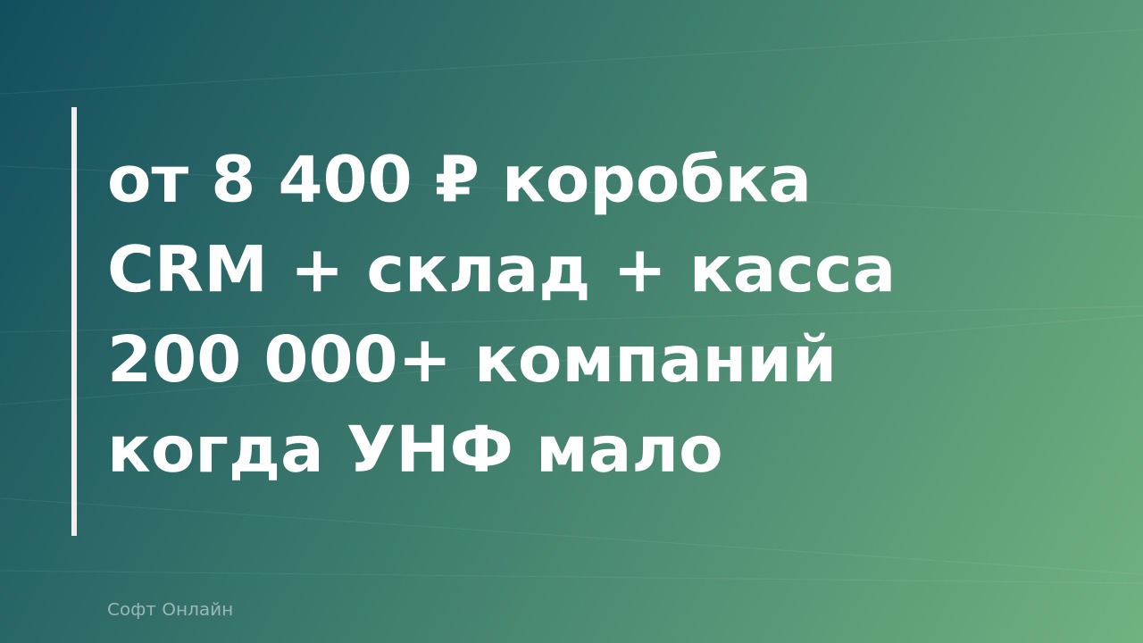 Коротко: 1С:Управление нашей фирмой (УНФ) — это «всё в одном» для малого бизнеса: продажи, закупки, склад, производство, CRM, финансы и зарплата в единой системе. Базовая лицензия стоит от 8 400 ₽, облако — от 1 200 ₽/мес на одного пользователя. Подходит компаниям до 50 сотрудников с оборотом до 500 млн ₽/год. Не подходит, если нужен сложный бухгалтерский учёт — для этого требуется связка с 1С:Бухгалтерией.