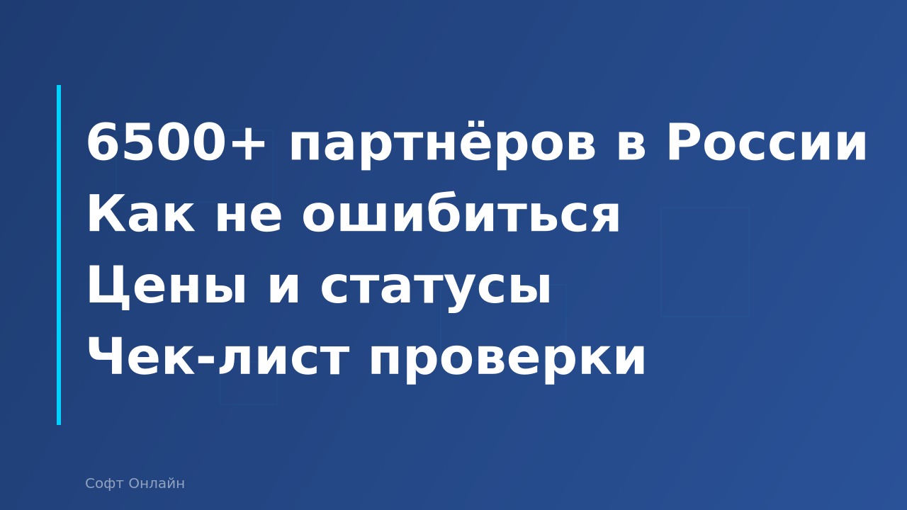 В России по состоянию на апрель 2026 года зарегистрировано более 6 500 официальных партнёров-франчайзи 1С. Все они имеют право продавать лицензии и оказывать услуги внедрения. Но «официальный партнёр» означает лишь то, что компания прошла минимальную сертификацию и платит взносы фирме «1С». Реальный уровень компетенций — от команды из одного человека без опыта до крупного интегратора с сотнями внедрений. Ошибка в выборе партнёра обходится бизнесу дороже, чем ошибка в выборе редакции программы: переход на другую конфигурацию стоит от 30 000 ₽, а провальное внедрение — от 200 000 ₽ потерянных средств и 3–6 месяцев потерянного времени.