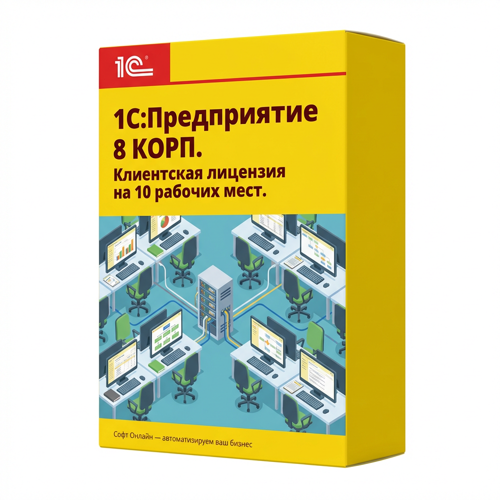 1С:Предприятие 8 КОРП. Клиентская лицензия на 10 рабочих мест. Коробочная поставка *