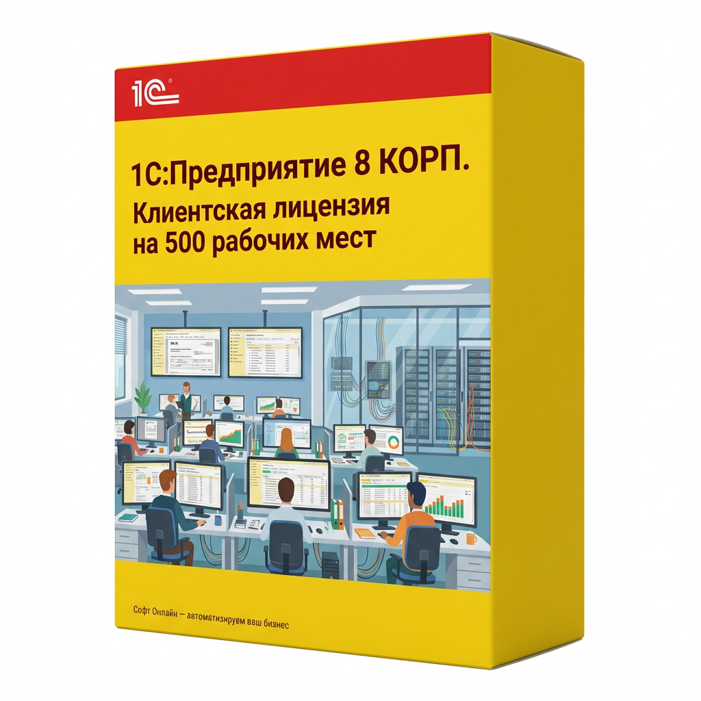 1С:Предприятие 8 КОРП. Клиентская лицензия на 500 рабочих мест. Коробочная поставка *