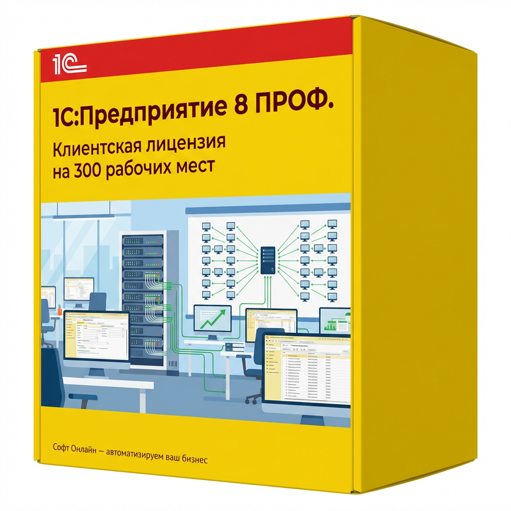 1С:Предприятие 8 ПРОФ. Клиентская лицензия на 300 рабочих мест. Коробочная поставка *