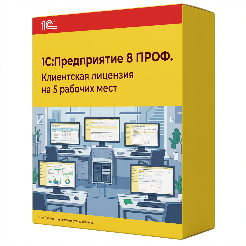 1С:Предприятие 8 ПРОФ. Клиентская лицензия на 5 рабочих мест. Коробочная поставка *